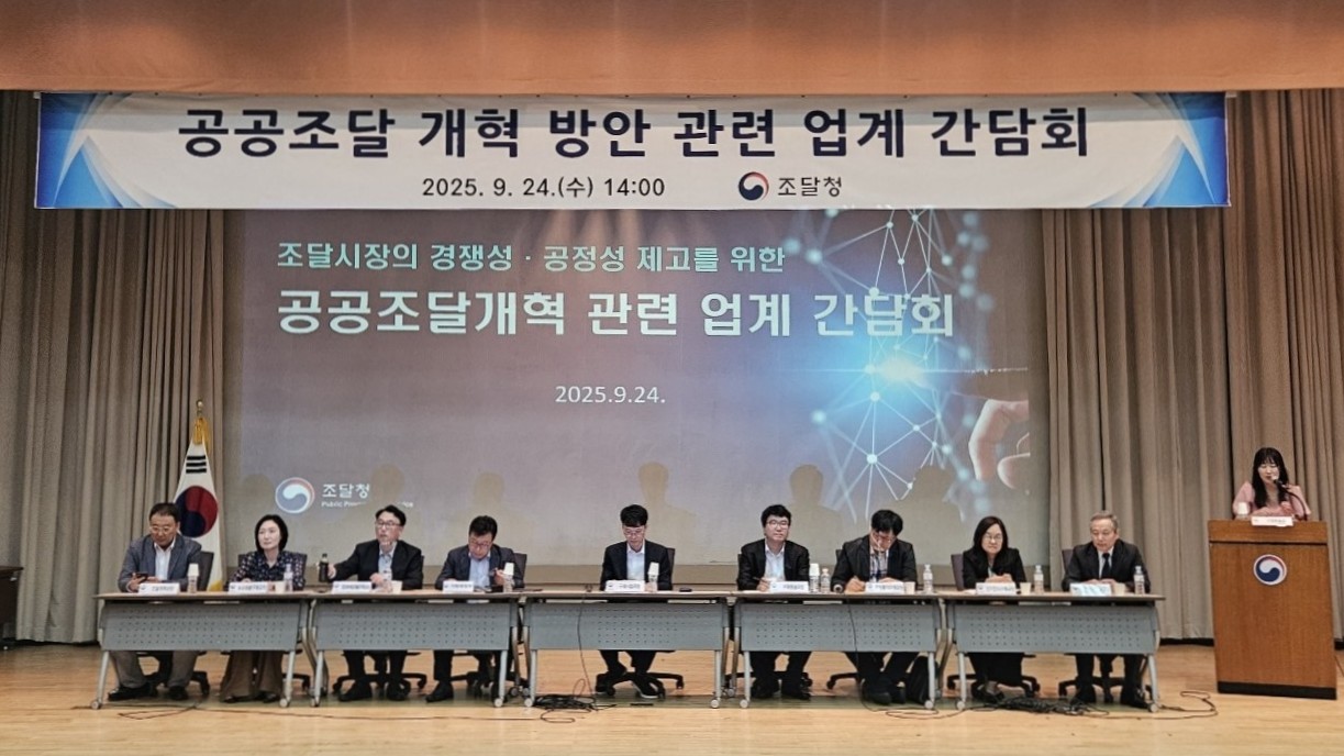 조달청(청장 백승보)은 9월 24일 서울지방조달청 대강당에서 중기중앙회, 여성경제인협회, 보훈·복지 단체, 정부조달마스협회, 정부조달기술진흥협회 등 소속 조달기업 약 300개사의 임직원이 참여한 가운데 "공공조달개혁 관련 업계 간담회"를 개최했다.